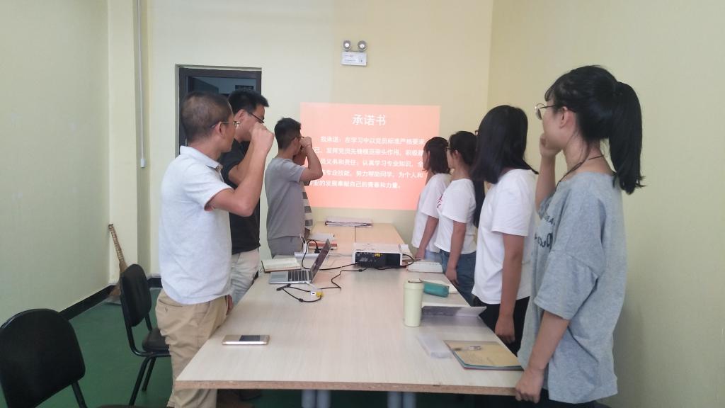首先,全体起立奏放国际歌,杨大伟老师宣布大会开始。经大会民主选举,推选杨大伟同志担任支部书记,推选刘夏晖同志为宣传委员。随后,全体成员起立并宣读承诺书。