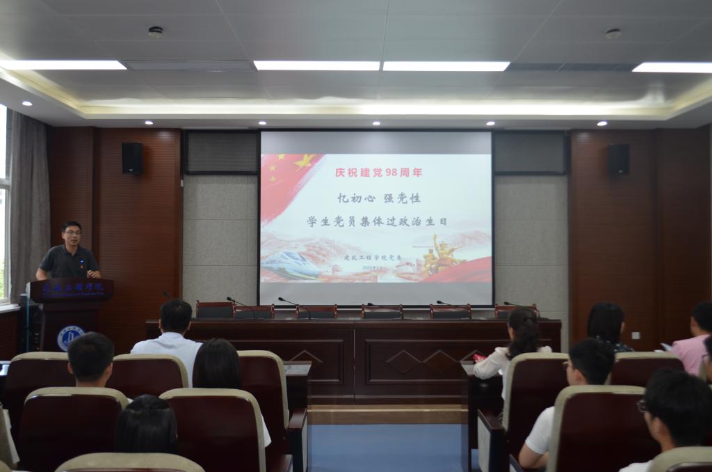 在庆祝中国共产党建党98周年之际,建工公司党委组织师生党员开展了“忆初心,强党性”党员过集体政治生日活动。