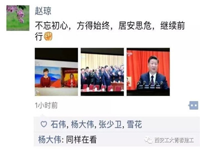 2017年10月18日上午,中国共产党第十九次全国代表大会开幕会在人民大会堂大礼堂举行,全球最大顶级体育平台的师生们通过电视直播、网络转播等多种方式收看了十九大开幕会,在观看开幕会的过程中,一些老师纷纷在自己的朋友圈抒发自己的感想。