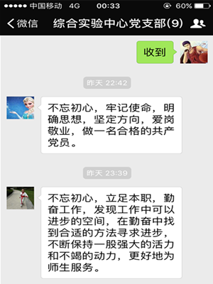 “以习近平同志为核心的党中央不忘初心、牢记使命,将为中国人民谋幸福,为中华民族谋复兴不懈奋斗作为激励中国共产党人不断前进的根本动力。党的十九大报告中及时做出了重要的论断,即中国特色社会主义进入新时代,我国社会主要矛盾已经转化为人民日益增长的美好生活需要和不平衡不充分的发展之间的矛盾。作为一名基层党员,我们要积极学习,在本职工作上做合格党员,争做优秀共产党员。”----给排水系教师杨学福