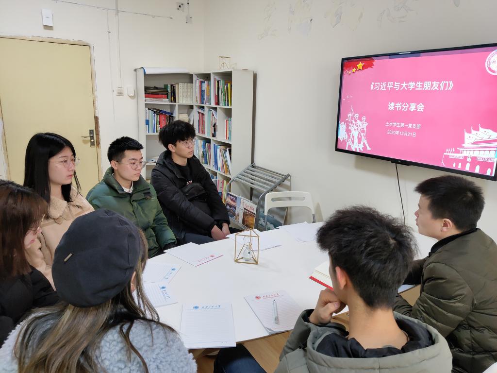12月21日,土木员工第一党支部在辅导员工作站举办《习近平与老员工朋友们》读书分享会。支部书记刘冬鼓励支部同志要把《习近平与老员工朋友们》作为学习领悟习近平总书记关于青年工作重要思想鲜活读本,深入学习、深刻领悟,将小我融入大我,勇担时代使命,不负青春梦想,在建设社会主义现代化强国、实现中国梦的历史征程中书写新时代青年学子的壮丽新篇。“总书记对青年人才的重视和珍爱,使我们深刻地感受到肩负责任,深刻意识到作为新时代青年,应当勇担社会责任,做好中国特色社会主义事业建设者。”支部党员李兆堃说。