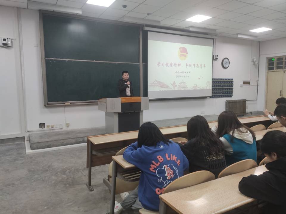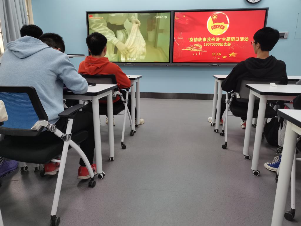 活动中,同学们首先集中观看央视战疫特别节目《人民的英雄,英雄的人民》视频,重温了抗击疫情期间的感人故事。随后,活动现场相继开展了抗疫故事分享、志愿者采访及交流研讨等环节,参与疫情防控工作的同学们分享了疫情期间令人感动的故事。现场互动热烈,诠释了建工青年“弘扬抗疫精神,凝聚青春力量”的精神品质,全体团员青年在学习分享中进一步深入学习体会了习近平总书记在抗击新冠肺炎疫情表彰大会上的讲话精神。