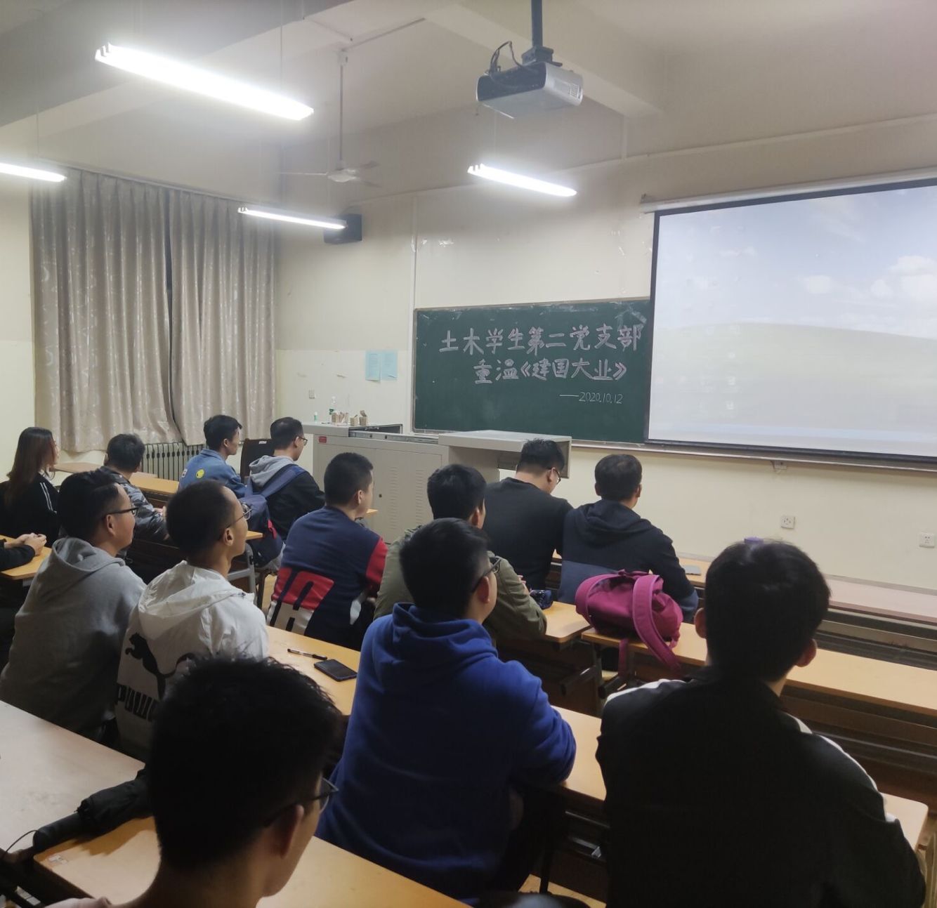 国庆期间,为了深刻落实“四史”学习,让广老员工党员重温新中国成立历史,增强民族荣誉感和自豪感,土木员工第二支部于工四202重温了《建国大业》革命历史题材电影。