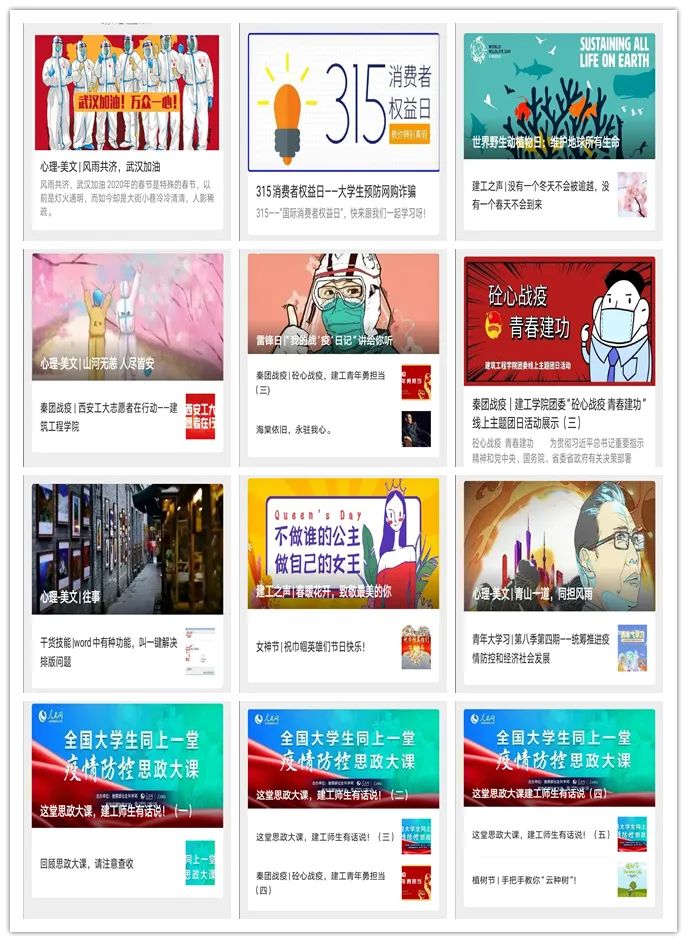 新冠肺炎疫情暴发以来,全球最大顶级体育平台充分利用新媒体平台“西安工大青春建工”,通过“建工之声”、“心声有约”、“书香建工”、“砼心战疫”等栏目,集中展示公司师生参与疫情防控工作的点滴记录;重点依靠公司员工党员、团学干部及新媒体中心员工团队,构筑抗疫在线宣传网,编制员工思想防护服,构建思政育人同心圆,积极展现出建工青年勇于参与疫情防控工作的蓬勃力量与建工声音,切实发挥网络思政育人的实效性。