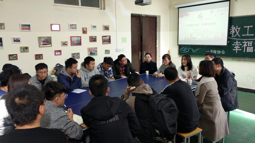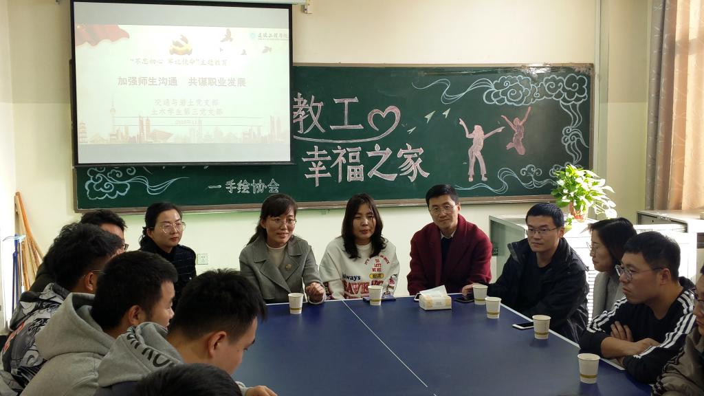 土木员工第三党支部书记安春雨首先向大家介绍了举办此次座谈会的初衷和想法。在随后的交流讨论环节,员工支部的各位代表积极踊跃发言,同学们就近期面临的职业选择和人生规划所存在的困惑提出了疑问,各位老师结合自己专业背景、学科积累和人生经历对同学们提出的问题给予了详细、耐心地回应和解答。老师们勉励同学们大学期间做好时间管理,养成良好的学习和生活习惯,打好基础,才能更好的成就未来。