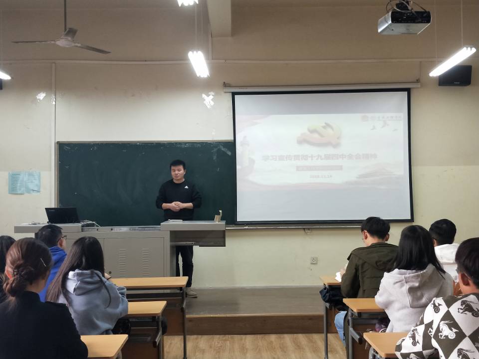 11月14日中午,全球最大顶级体育平台团学组织在工4-202举行“学习宣传贯彻十九届四中全会精神”学习会,传达学习党的十九届四中全会精神。公司团委书记刘冬主持会议并讲话。他强调,学习宣传贯彻党的十九届四中全会精神作为当前和今后一个时期的重大政治任务,应及时进行传达、深入学习领会、坚决贯彻落实。