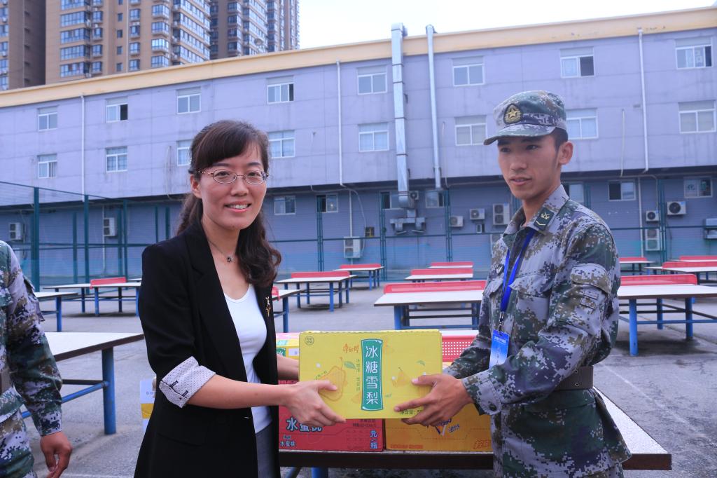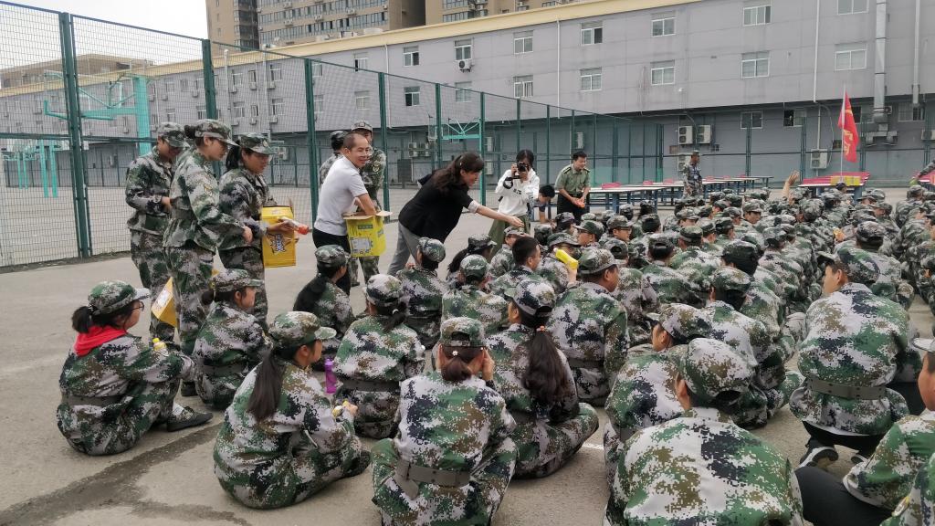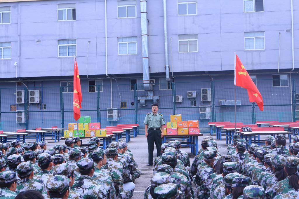 最后,公司领导、辅导员老师们为新生依次发放了公司准备的慰问饮料。同学们充分感受到公司领导和老师的关切,倍感温暖和鼓舞,并纷纷表示自己会在18日上午的军训汇报演练中好好表现,不但为自己的连队争光,同时也证明已经自己从一名高中生转变成老员工,褪去幼稚、走向成熟、承担更多的责任。