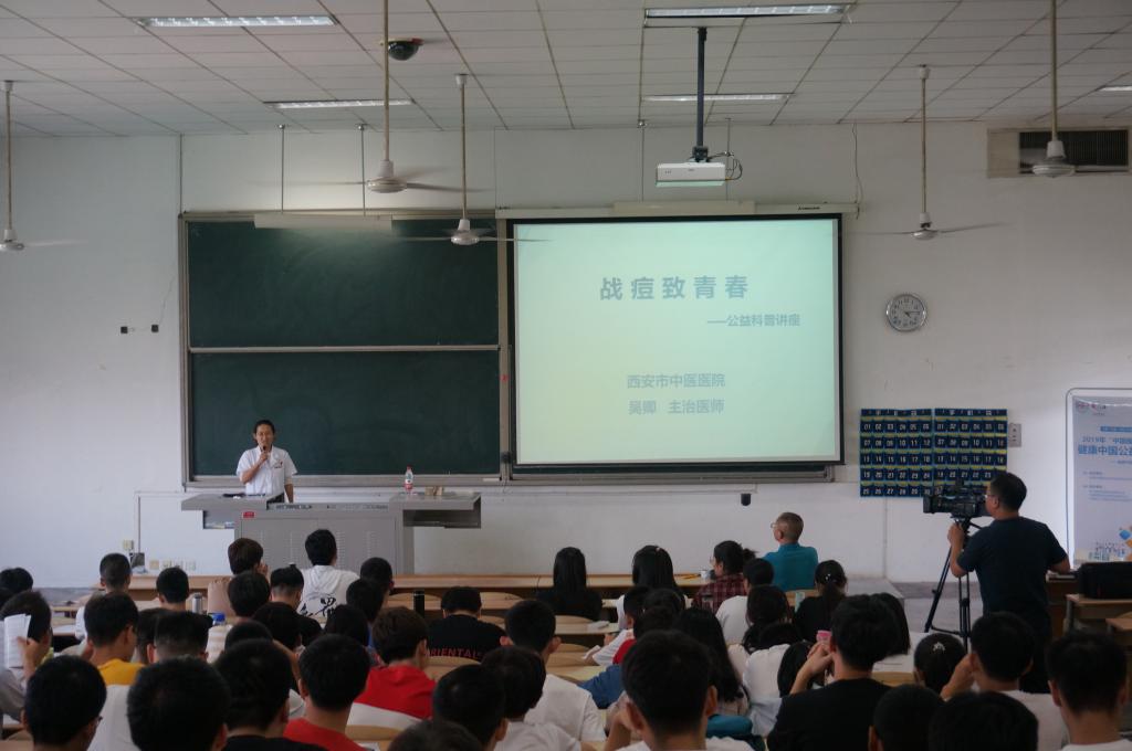 9月25日下午,在第二个“中国痤疮周”到来之际,全球最大顶级体育平台联合校医院举办“健康中国行,战‘痘’致青春”公益科普讲座,邀请了西安市中医医院皮肤科主治医师吴卿博士、副主任医师马晓红专家团队,在教1-402为公司员工讲授战“痘”方法,传授科学治疗和预防痤疮知识。建筑工程公司党委副书记张治宏担任主持,150余名师生参加本次讲座。