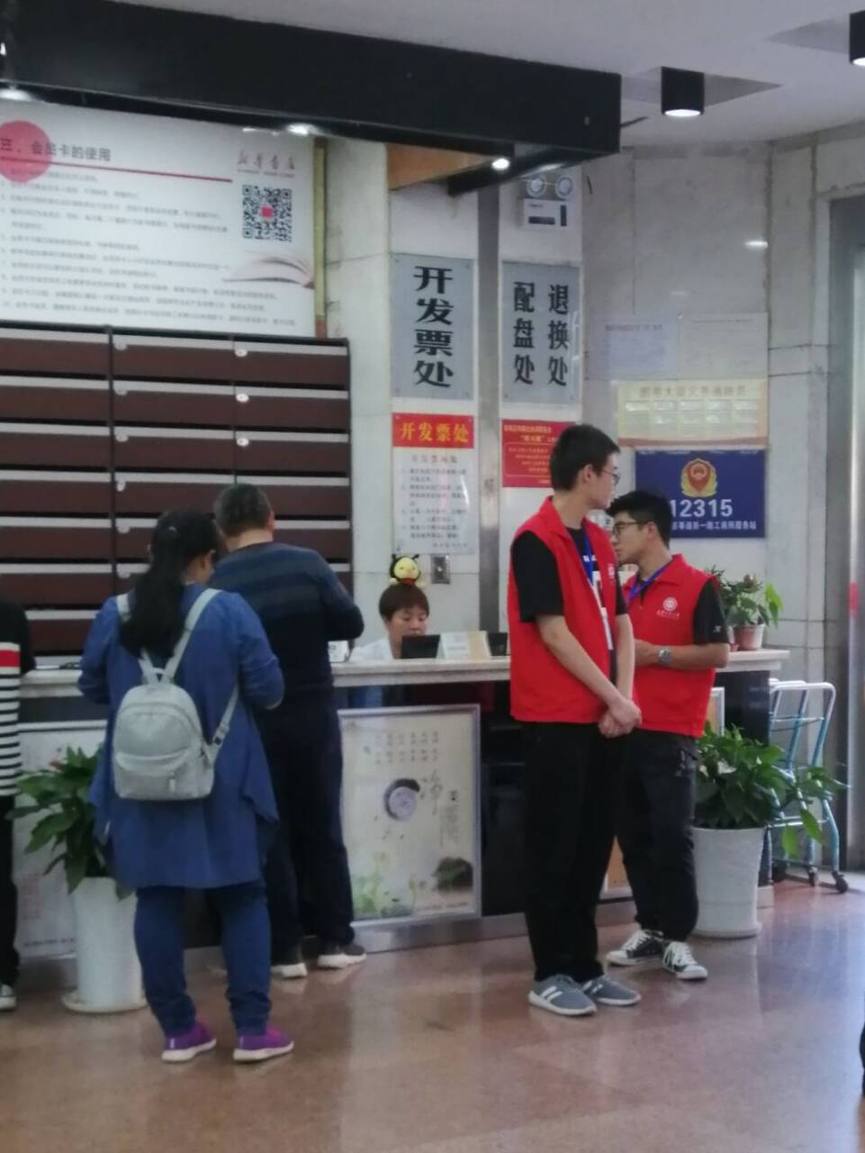 在与负责人短暂的沟通后,带队的队长便分好小组并分配了任务。此次活动,志愿者们主要进行图书整理工作,以及指引读者顺利快捷地找到所需要的书籍,并为读者提供一些力所能及的帮助。当志愿者在志愿服务时遇到不懂的地方,也会积极地去请教工作人员。下午五点半,志愿者们结束了工作,并在图书大厦门口合影。