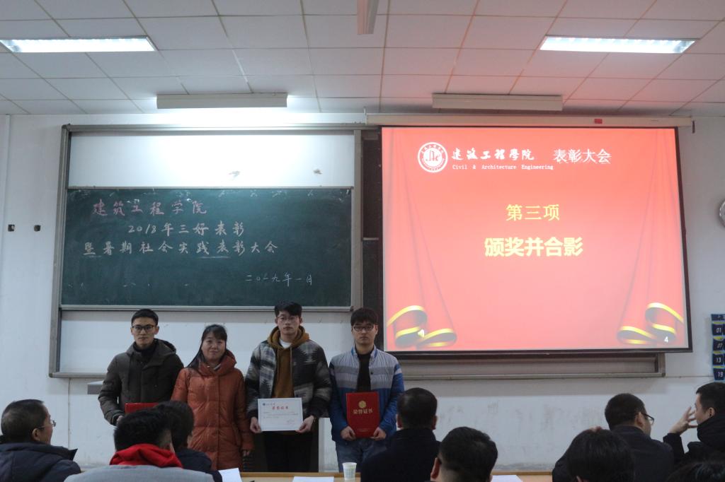 1月4日,建工公司于教1-105召开了三好总结暨暑期社会实践表彰大会。 大会由公司团委书记安春雨主持,公司党委书记张英、副经理赵敏、副书记张治宏出席大会,模板脚手架系主任曾凡奎、岩土与地下工程系副主任王亮、全体辅导员和获奖集体及个人代表200余人参加了大会。