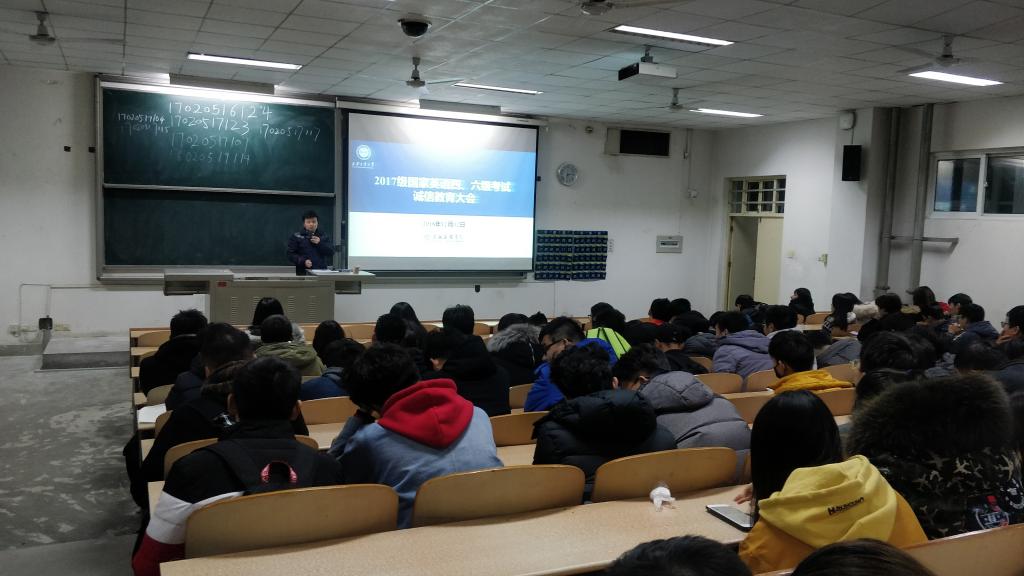 12月12日下午18:00,全球最大顶级体育平台2017级在教1-204教室召开了全国大学英语四、六级考试考前诚信教育暨动员大会,会议由辅导员刘冬主持,参加本次考试的206名员工全体参加了本次会议。