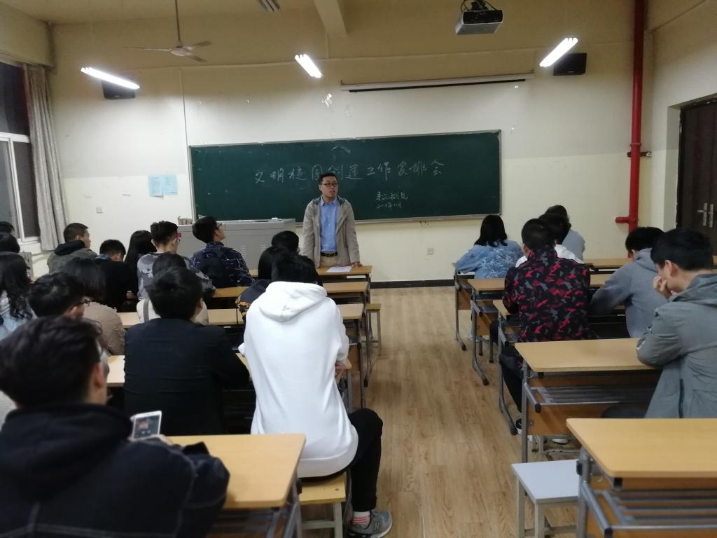 焕发校园文明新气象、开启创建新征程,10月22日,建工公司团委在工4-202教室召开了文明校园创建工作员工动员会,并就相关工作进行了安排布置。公司团委书记安春雨主持会议并作了动员。全体团学干部、各年级生活委员和宿舍长参加了会议。