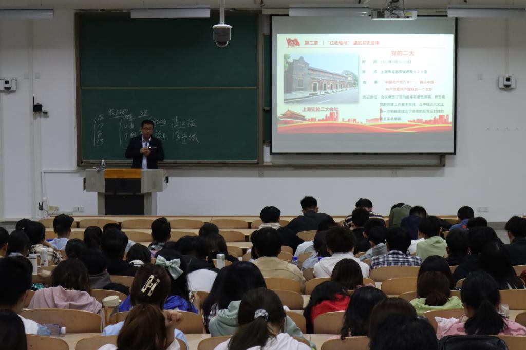 本次党史宣讲活动题目为《学党章发展历程,悟百年光辉党史》。讲座伊始,张晓宾指出红色遗址是我党的精神命脉及其重大意义。随即,他讲解到红色地标是百年党史最鲜明的历史见证。从1921年在上海兴业路102号宣告中国共产党的成立,到1927年在中国共产党领导下的南昌起义,再到1935年在贵州遵义的生死转折,再到1949年中华人民共和国的成立。张晓宾还为大家讲述红了色遗址背后的故事,非常生动,引人入胜。