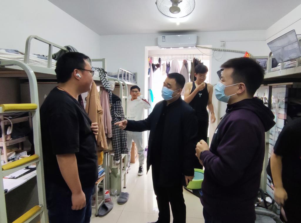 10月28日,公司党委副书记翟超、辅导员刘冬逐一走访2020级员工宿舍,与员工进行详细交流,检查了解线上听课情况。