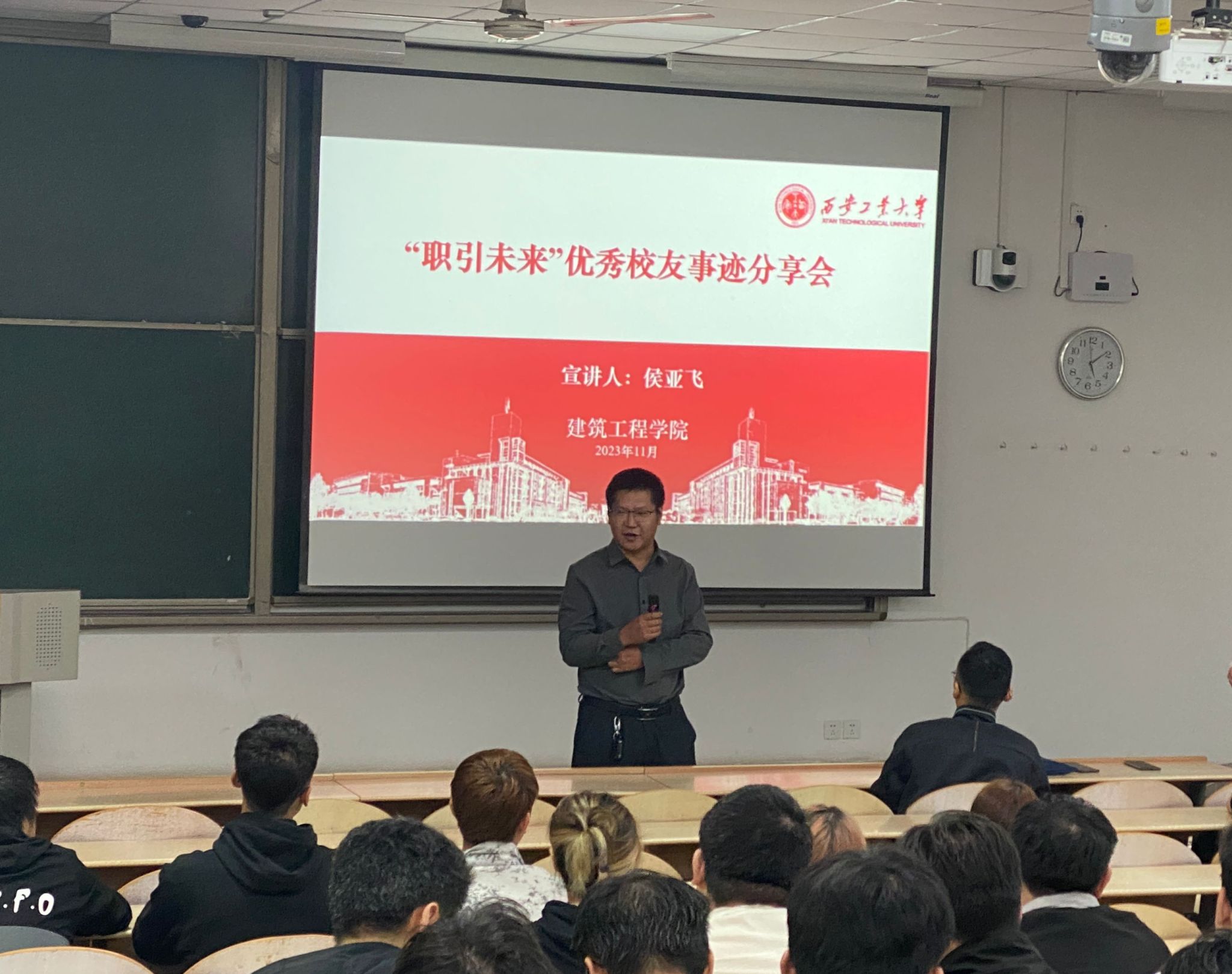 11月1日,公司在教1-103举办“职引未来”优秀员工事迹分享会。公司2006届土木工程专业员工、陕西建工机械施工集团有限公司国际工程公司书记侯亚飞师兄作为主讲嘉宾,与150余名在校学子们分享他的求学、工作经验和人生感悟。