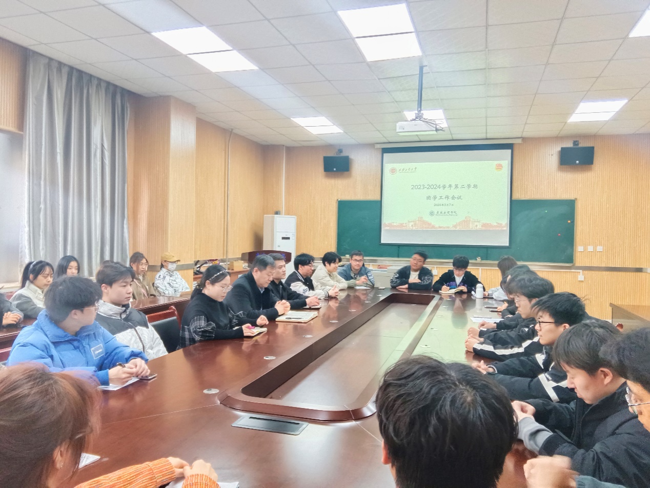 随后,段强老师向团学骨干们给予了宝贵的建议,启发性地指出团学干部要加强理论学习,提高思想觉悟,在实际工作中提升综合素质,进而发挥榜样作用。晁思思老师对本学期重点工作进行了规划部署,着重强调团学干部要做到事事有回应,件件有着落,勤于学习和总结,确保各项工作有序推进并高质量完成。最后,贾建利老师指出,团学干部是员工工作的重要力量,要以身作则,锤炼品格;统筹协调,尽职尽责;互相帮助,共同进步,实干求干,创新工作。
