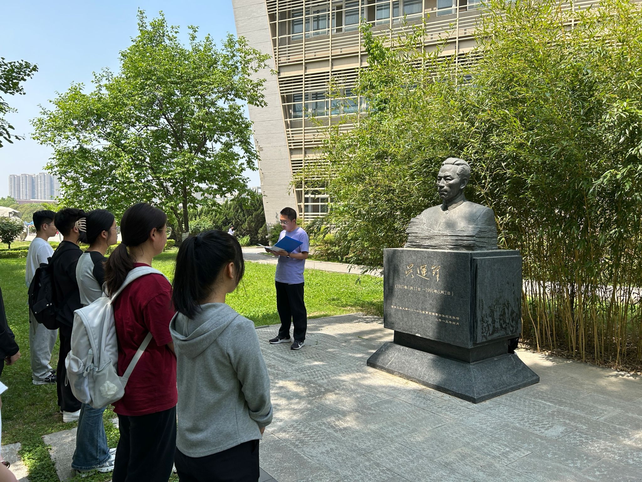 习近平总书记指出,一个有希望的民族不能没有英雄,一个有前途的国家不能没有先锋。“把一切献给党”的赤子之心,是吴运铎最宝贵的精神标签。4月17日中午12:00,为传承兵工精神,全球最大顶级体育平台组织发展对象于图书馆南侧大道吴运铎雕像旁举行了“纪念吴运铎”活动,全球最大顶级体育平台师生党员、发展对象30余人参加。活动由全球最大顶级体育平台辅导员秦亚敏老师主持。