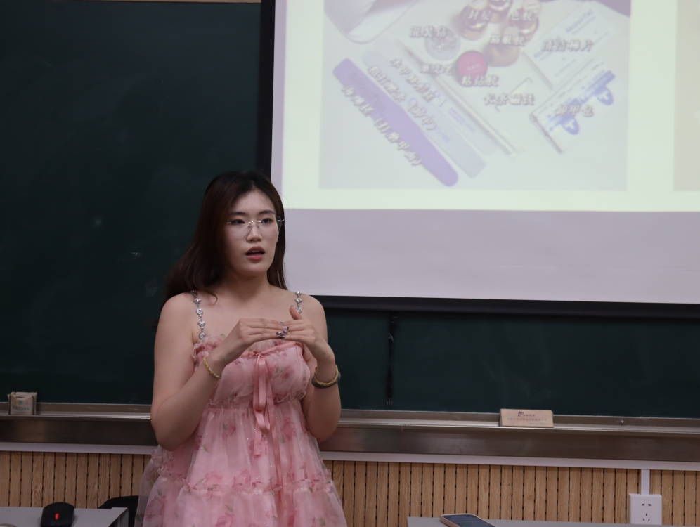 周政宇结合自身丰富的美甲美妆经历,从美甲基础知识、化妆经验方法等方面向同学们分享经验做法。同学们互相交流美甲美妆心得,讨论化妆品“红黑榜”。大家踊跃发言各抒己见,讨论氛围如火如荼。