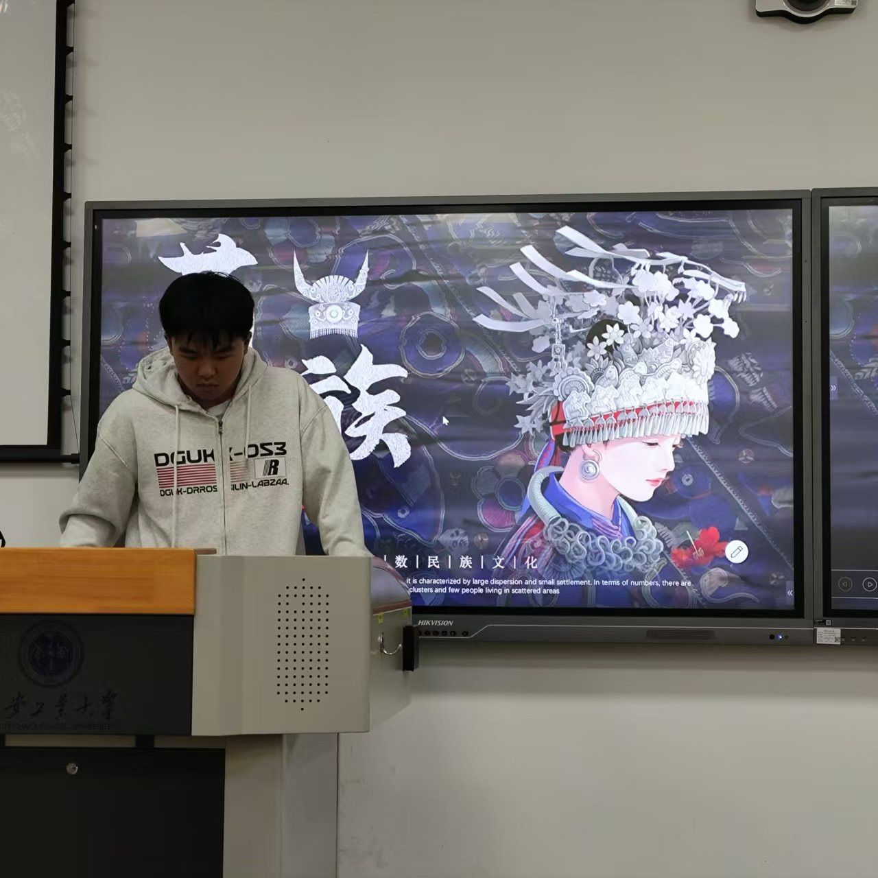 分享会上,陆垚结合精心准备的PPT,通过民族起源、民族文化、节日习俗等方面向大家进行细致讲解,并结合自身成长经历讲述了民族团结重要意义,各民族要相互了解、相互尊重、相互包容、相互欣赏、相互学习、相互帮助,像石榴籽那样紧紧抱在一起。与会同学纷纷表示,对苗族文化有了更为深入的了解和认识,也深刻感受到了不同民族文化所散发出的独特魅力和价值。
