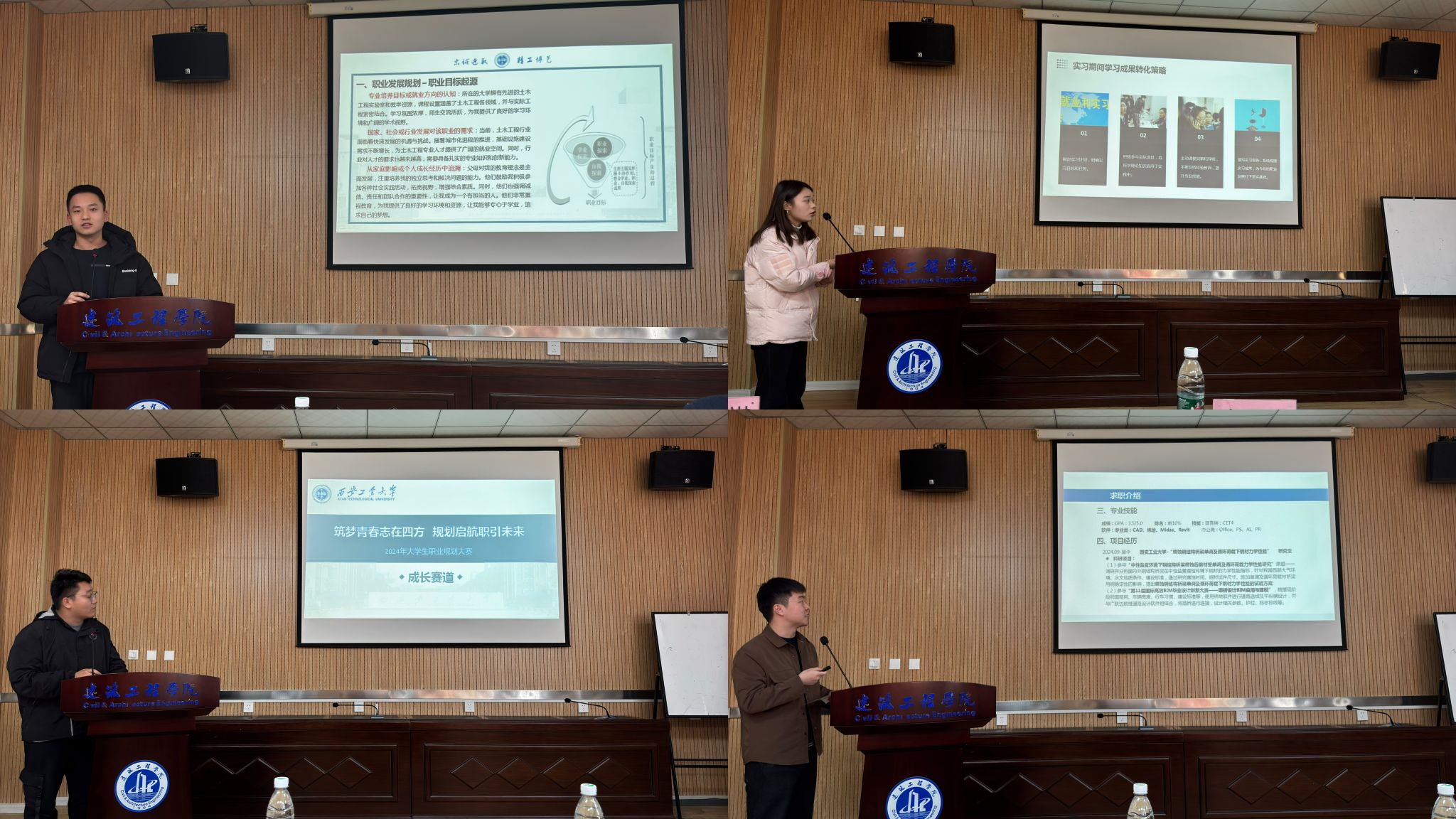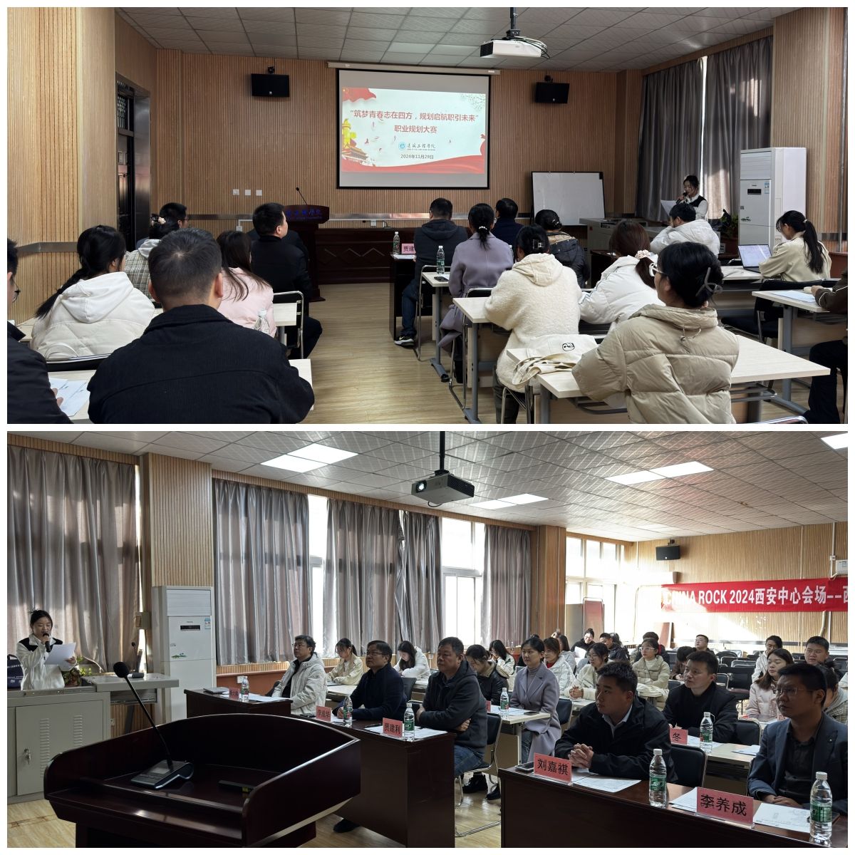 11月29日,公司在教4-201举办“筑梦青春志在四方,规划启航职引未来”第二届职业规划大赛,旨在进一步增强员工职业生涯规划意识和就业意识,提升创新能力、实践能力和就业能力,助力员工更高质量和更充分就业。公司党委副书记贾建利、中建八局西北公司刘嘉祺、土木工程系主任李成华、城乡规划系主任杨大伟、智能建造系主任李养成、全体辅导员担任评委,23名成长赛道与就业赛道参赛选手参加现场展示。