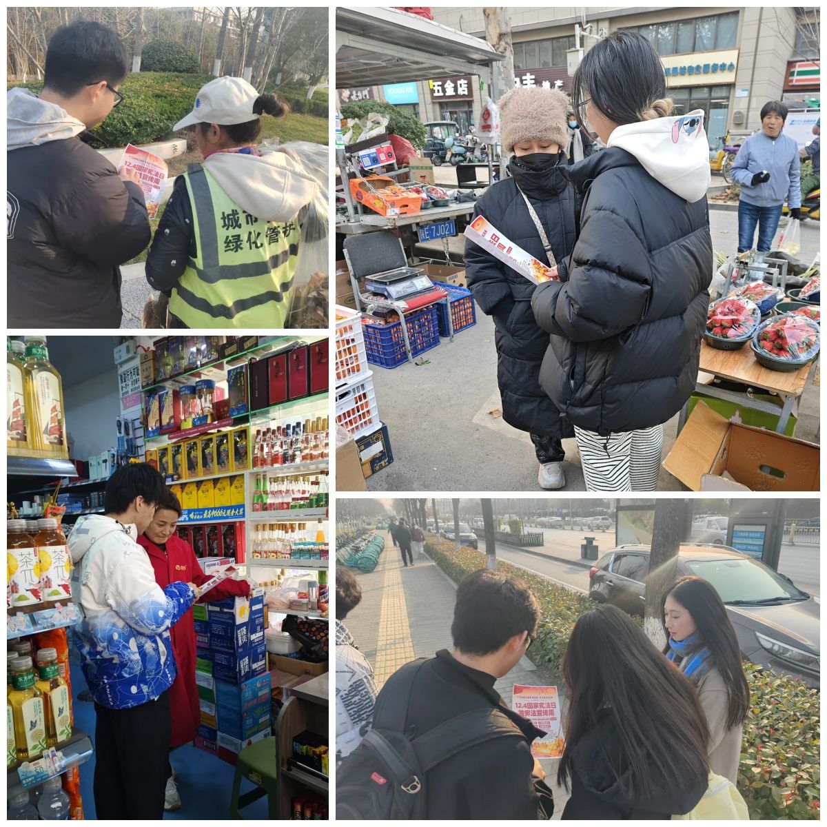 12月6日,2023级员工走上街头、走进社区,通过发放图文资料、现场宣传交流等形式,向居民普及宪法知识。