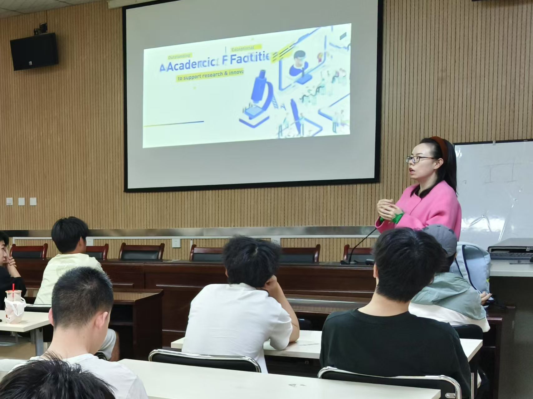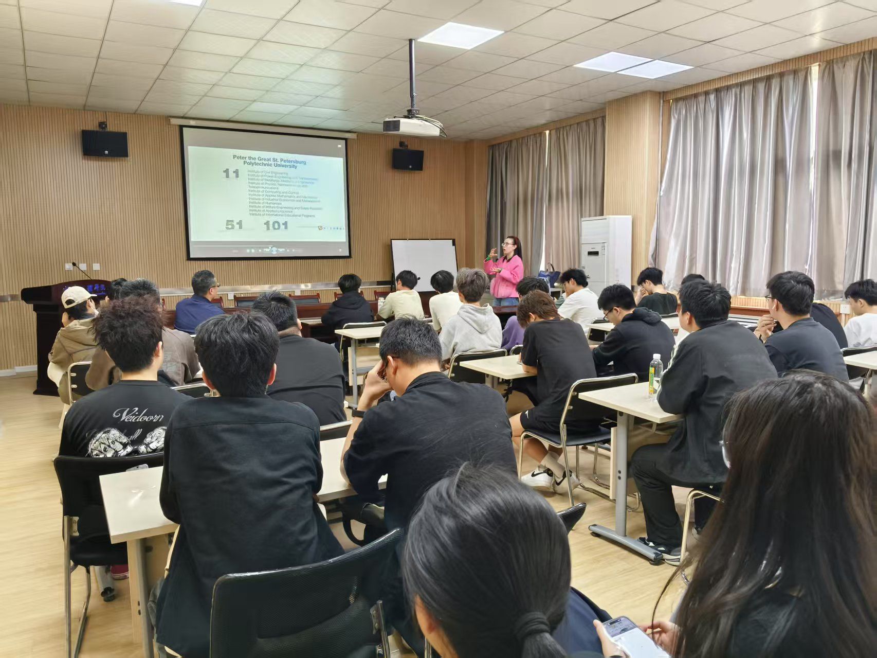 3月26日,公司在教4-201组织出国留学宣讲会。国际交流与对外合作处郑老师担任主讲嘉宾,公司80余名本科生参加。