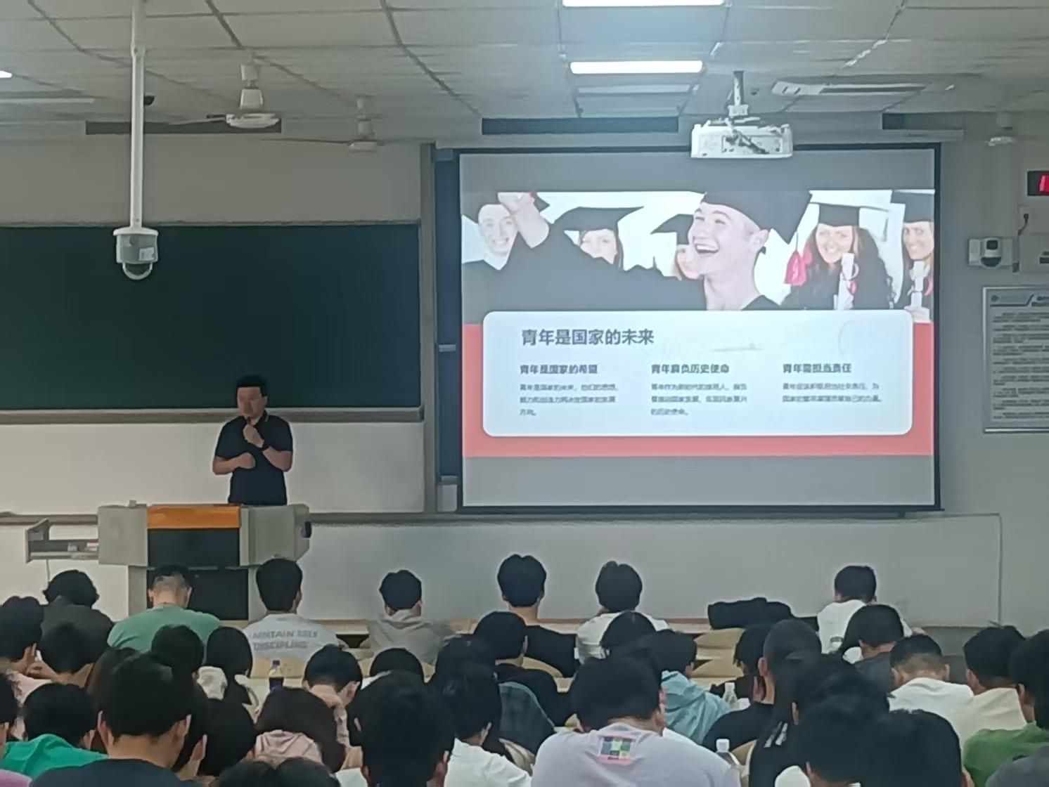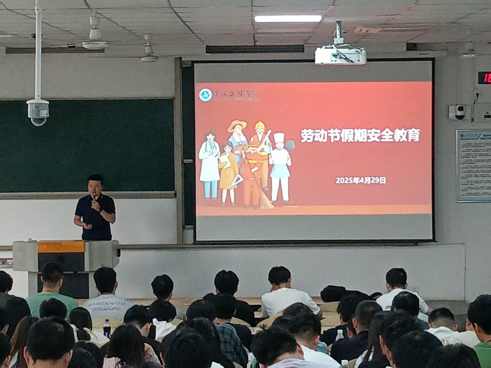 刘冬首先强调:“劳动教育是新时代青年成长成才的必修课,是德智体美劳‘五育并举’的重要一环。同学们要深刻理解‘劳动创造幸福’的内涵,通过实践锻炼劳动技能,培养吃苦耐劳、团结协作的精神,让青春在奋斗中绽放光彩。”其次,他以“劳动精神、劳模精神、工匠精神”为核心,结合专业实习、社会实践、志愿服务等工作,向同学们阐释劳动教育在个人成长、工作实践、社会发展中的重要意义。紧接着,他以五一假期安全教育为主题,围绕交通安全、出游安全、饮食卫生安全、财产安全、人身安全、自我保护、预防电信诈骗等安全问题展开强化教育,提醒留校员工加强宿舍安全管理,重点做好防火、防盗工作,及时排查并消除各类安全隐患。最后,刘冬结合五四青年节,希望同学们坚定理想信念,坚定不移听党话、跟党走,立报国强国大志向、做挺膺担当奋斗者。