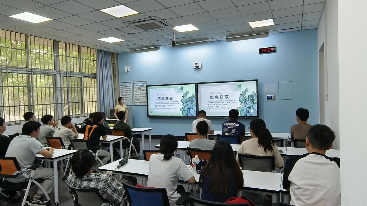 韩佳序围绕大学学习、工作、生活等方面鼓励大家始终保持积极向上的心态,多参与学科竞赛,提升自身综合竞争力。朱龙在考研深造方面向大家做分享,他结合专业发展和行业实际给大家提供建议,勉励大家聚焦先进技术和国家战略规划找准方向。杨武和苏文静同学分别从求职和考公方面向大家作介绍和分享。