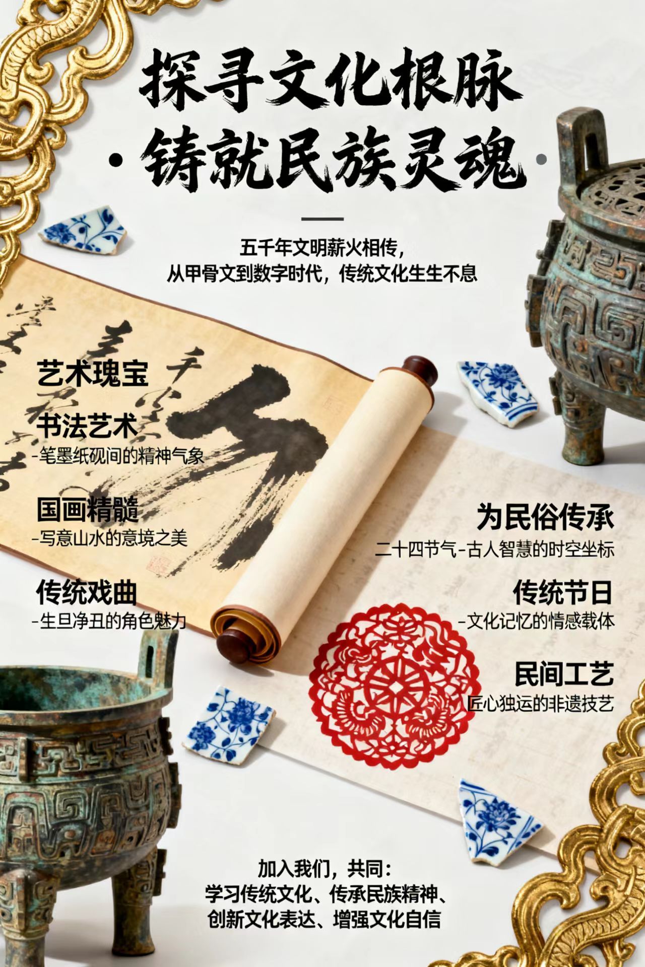 活动期间,各班级积极响应,同学们充分发挥想象力与创造力,围绕中华优秀传统文化内涵,精心创作了一批高质量的短视频、动漫、海报等新媒体作品。这些作品或生动演绎历史故事,或创意呈现非遗魅力,或巧妙融合传统元素与现代设计,在方寸屏幕间展现了传统文化的永恒活力与青春表达的无限可能。