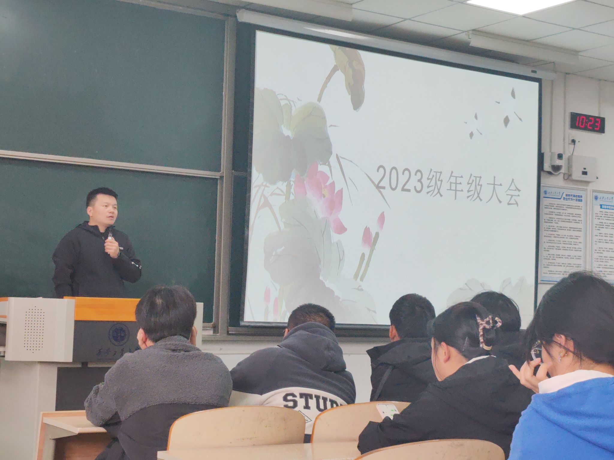10月22日,公司在教1-203教室召开了年级大会。本次大会由刘冬老师主持,2023级全体员工参加。旨在帮助同学们明确近期学习生活要求,强化思想引领,确保年级各项工作平稳有序开展。