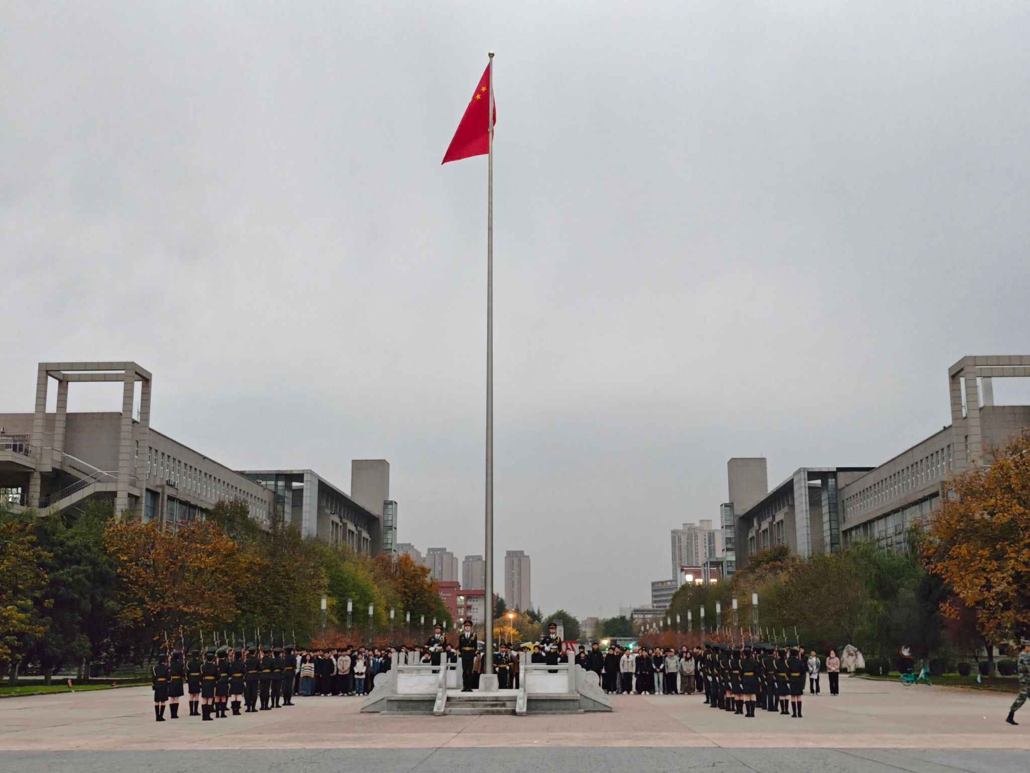 6时45分,全体员工按要求完成列队。升国旗仪式正式开始,国旗护卫队护送国旗入场,鲜艳的五星红旗冉冉升起。师生保持肃立,面向国旗行注目礼并齐唱国歌。仪式结束后,员工代表以"在国旗下担当"为主题发表演讲,激励同学们勇担时代使命,将个人成长融入国家发展。整个过程秩序井然,展现了建工学子良好的精神风貌。