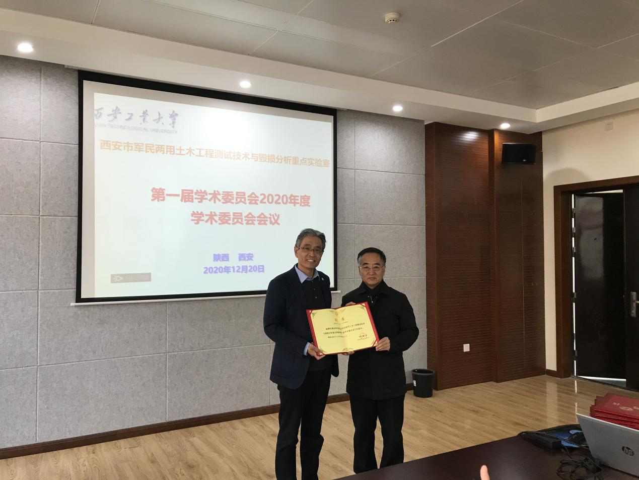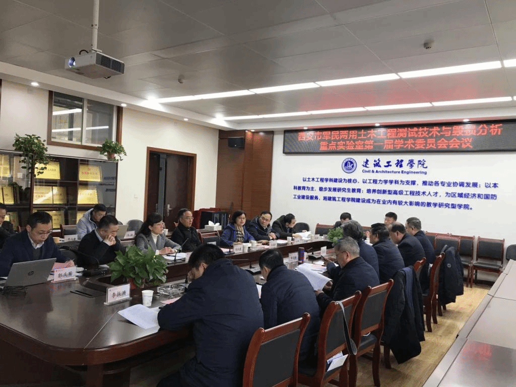 12月20日下午,西安市军民两用土木工程测试技术与毁损分析重点实验室在西安召开了本年度学术委员会会议。会议第一阶段由建筑工程公司郭庆军副经理主持,并介绍与会专家和领导。赵红星副董事长致欢迎词,刘慧萍副经理介绍公司教学科研整体情况,科技工作部肖锋副部长宣读西安市重点实验室获批文件,公司张英书记宣读重点实验室第一届学术委员会聘用文件。赵红星副董事长向学术委员会委员颁发了聘书。
