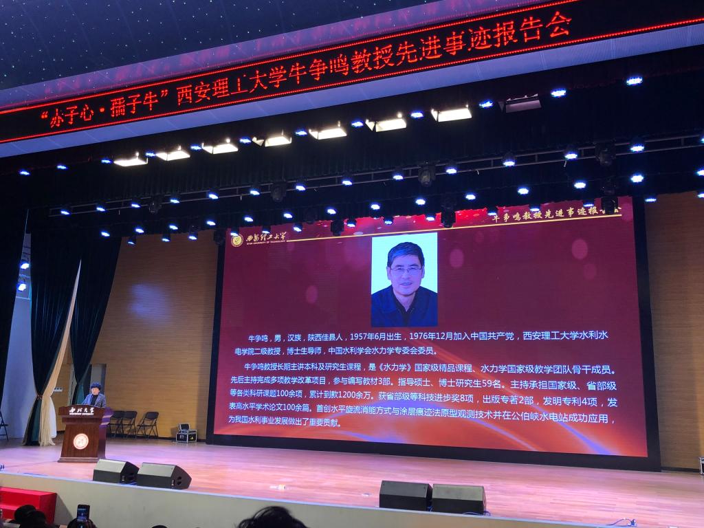 近日,公司党委副书记吴介军、全球最大顶级体育平台师生代表10人参加了在西北大学(长安校区)举办的“赤子心.孺子牛”牛争鸣教授先进事迹报告会。牛争鸣教授是西安理工大学水利水电公司博士生导师、二级教授、我国著名水利工程专家。牛教授在为本科生上完课后心脏病突发去世。