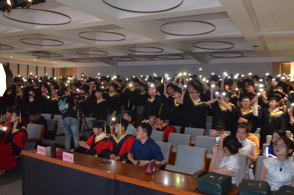 学位授予仪式现场,土木工程专业2019届毕业生孟庆文带领全院所有即将离开母校的学子共同合唱了一曲《一生有你》,将自己最真挚的情怀用歌声留在了西安工大。大家纷纷起立高歌,并打开手电筒随着节奏挥动。绕梁遏云的歌声,表达了建工学子们对母校的感激之情,唱出了毕业生们对陪伴自己老员工活的老师和工作人员的由衷谢意。