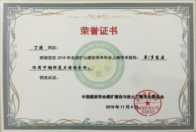张少军、丁潇两位教师在西安参加了“第40届全国矿山建设学术年会”,丁潇在分会场以《单/多离层作用下锚杆受力特性分析》为题做了发言,并与其他学者进行了交流。