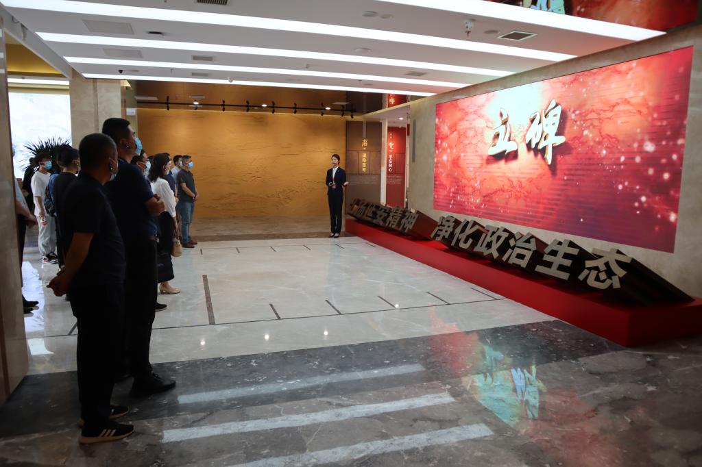 基地展览以“弘扬延安精神,净化政治生态”为主题,坚持以案说法、以案释纪,旨在教育引导广大党员干部知敬畏、存戒惧、守底线。在讲解员的带领下,由《立碑》 开局,全体人员跟随讲解员依次参观了“省、心、律、诫、儆、光、率、进、诺”9个板块的内容。一张张图片、一段段视频、一个个模拟实景,让大家真切体会到党中央对腐败现象决不姑息、对违法违纪现象必查必究,不断推动全面从严治党向纵深发展的坚定决心。