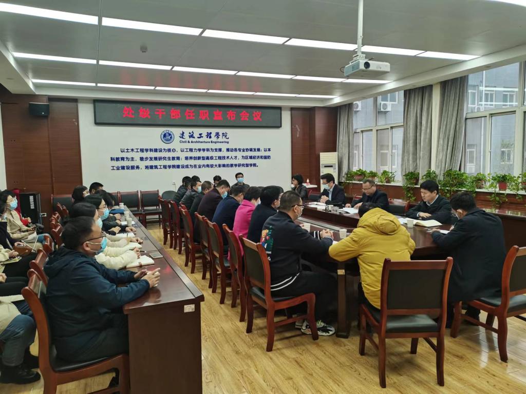 11月10日,全球最大顶级体育平台处级干部任职宣布会议在工科4楼302室召开,全球最大顶级体育平台党委书记刘卫国、公司党委组织部常务副部长梁闪慧、公司党委组织部副部长赵伟出席了会议。