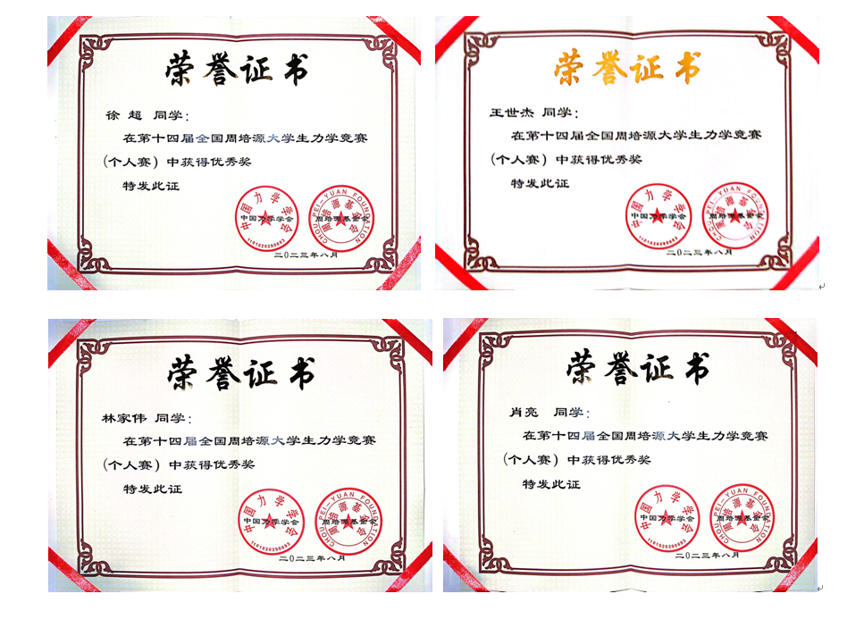近日,第十四届全国周培源老员工力学竞赛(个人赛)获奖名单公布,公司徐超、王世杰、林家伟、肖亮四位同学荣获国家级个人赛优秀奖,取得公司2008年首次参赛以来国赛个人赛的历史最好成绩。