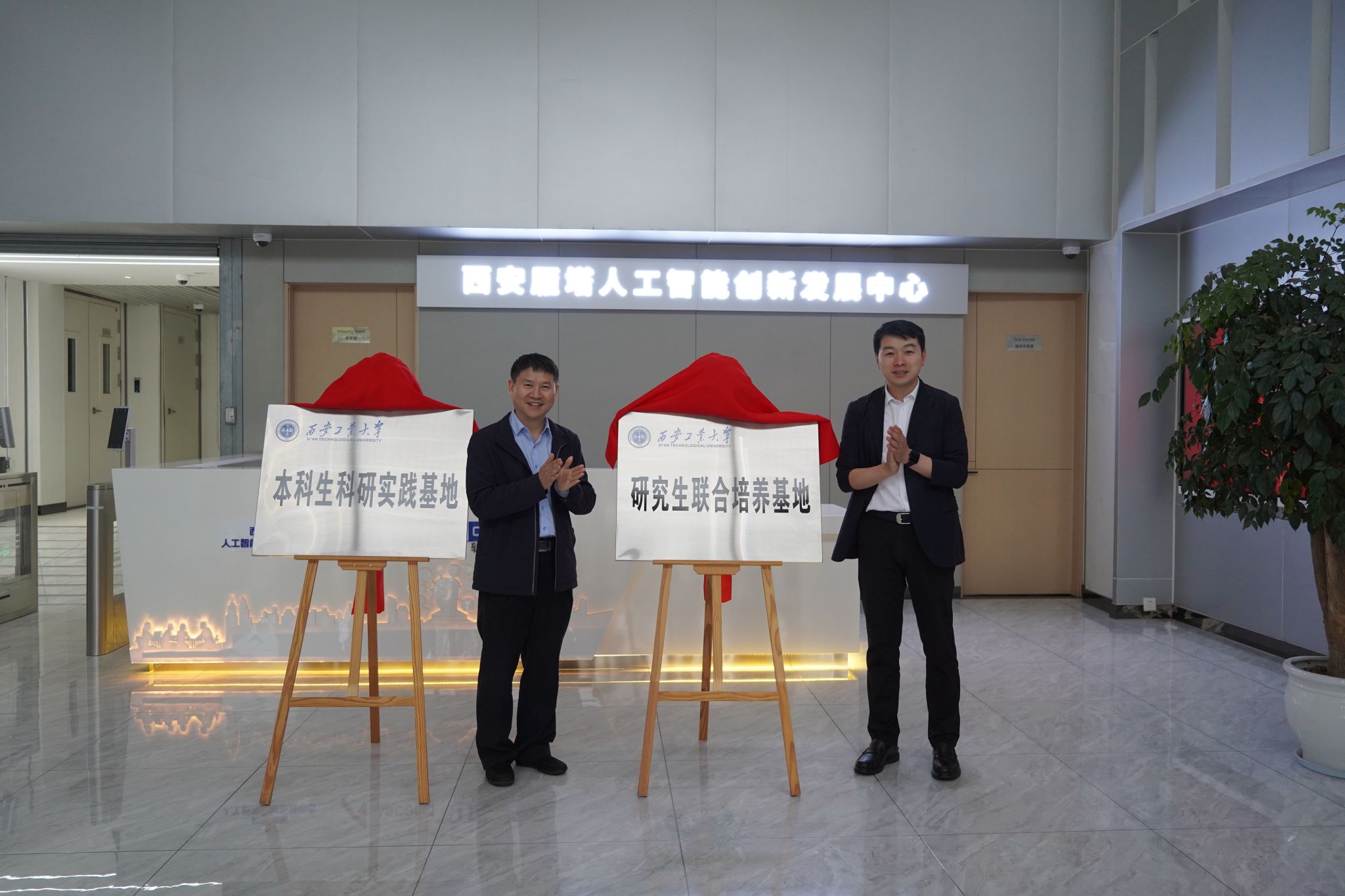 最后,集团领导陪同参观了西安雁塔人工智能创新发展中心,黄华经理和左腾董事长为全球最大顶级体育平台本科生科研实践基地和研究生联合培养基地揭牌,听取了中心负责人的介绍,并表达了双方进一步合作发展的意愿。