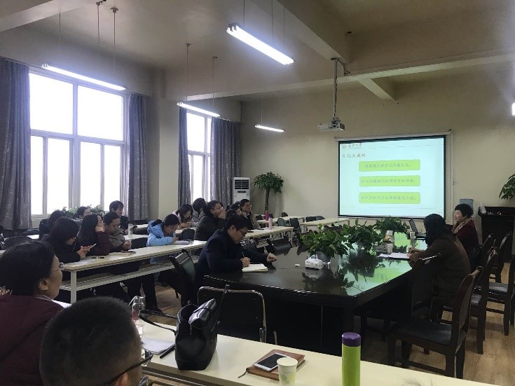 会议开始,孙老师首先介绍了长安大学职工教育的基本情况以及对职工的培养管理模式。其次,孙老师讲到,职工的文化背景多样、宗教信仰不同且学业水平差异较大,这些问题会增加英文教学的难度,针对这些问题如何开展课堂教学、课后答疑,以及教材的选取、如何备课等分享了自己的方法。最后,孙老师与公司教师们展开座谈,以自身教学经验现身说法,对教师们提出的英文教材选用、英文课堂中的沟通、国际生考试等问题给出建议。