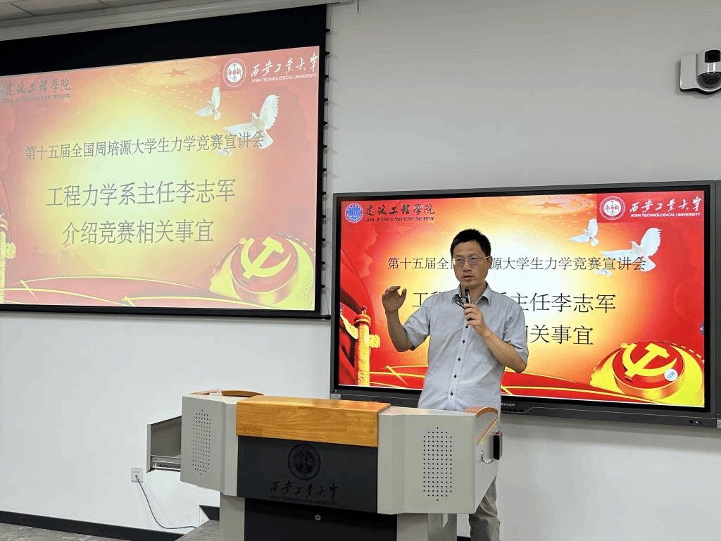 工程力学系主任李志军对公司“第四届全国周培源老员工力学竞赛”活动进行了总结,进行了“第十五届全国周培源老员工力学竞赛”宣讲动员,详细介绍了全国周培源老员工力学竞赛相关事宜,鼓励同学们努力学习、刻苦钻研、踊跃参赛、再创佳绩!