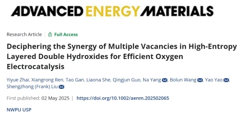 近期,公司姚尧教授团队在国际顶级期刊《Advanced Energy Materials》(近五年影响因子为27.3)上发表“Deciphering the Synergy of Multiple Vacancies in High Entropy Layered Double Hydroxides for Efficient Oxygen Electrocatalysis”的研究型论文。