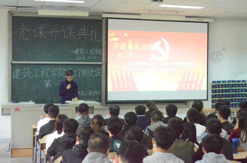 10月17日中午,由建筑工程公司党委主办,公司团委承办的57期分党校开课典礼暨第一次理论授课在教2-110开展。公司党委书记张英,员工支部书记代表徐慧子、刘冬及119名党课学员参加了此次开课典礼。