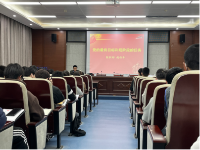 赵伟奇老师以“党的最终目标和现阶段的任务”为题讲授本次课程。老师带领本期积极分子通过了解党的纲领引出党的最高理想和最终目标是实现共产主义。指出共产主义社会是人类历史最美好的社会制度;社会主义必须代替资本主义,最后必然发展为共产主义;党的现阶段的基本任务是建设中国特色社会主义;社会主义初级阶段是不可逾越的历史阶段。