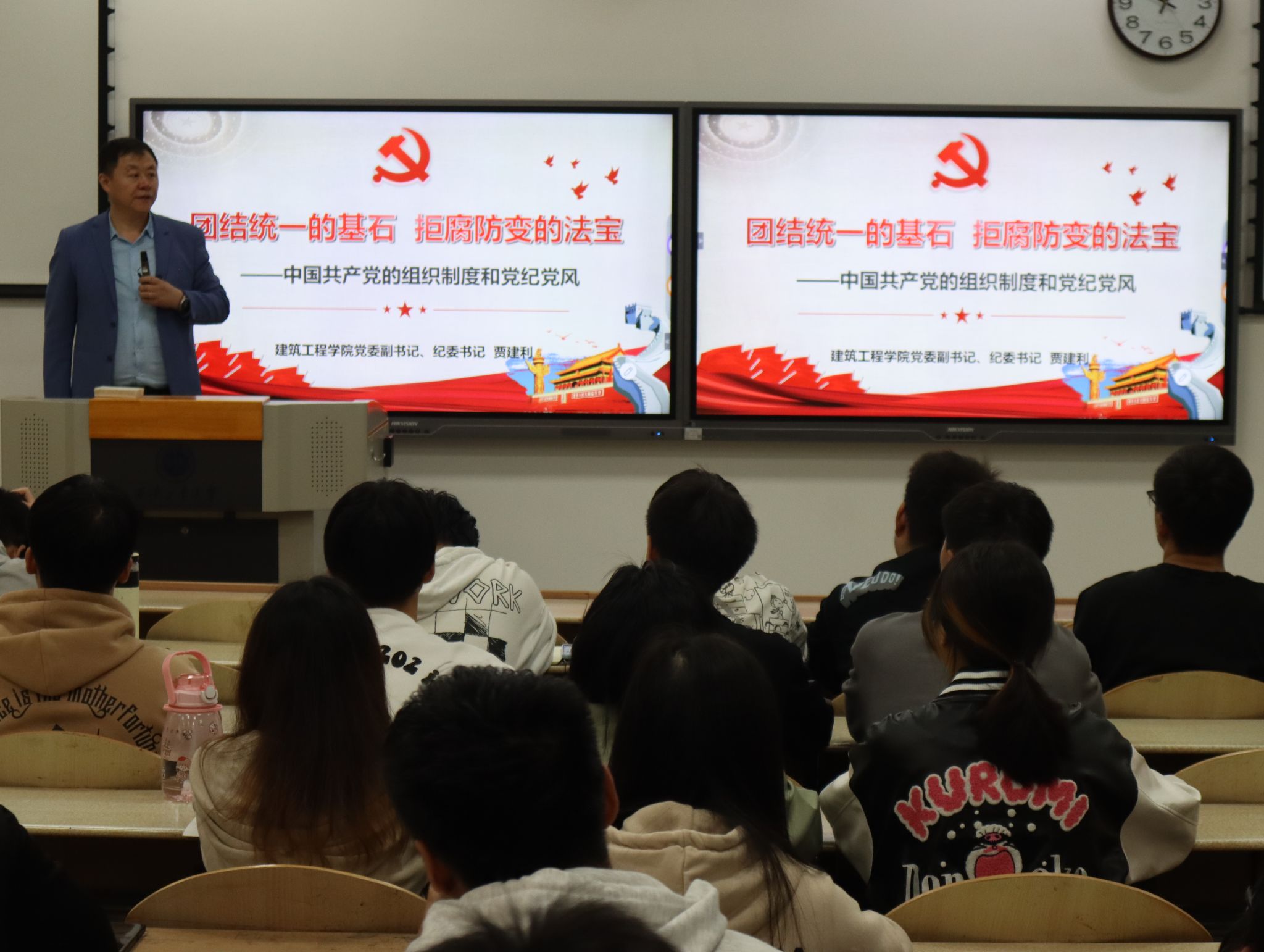 开班典礼结束后,贾建利以“团结统一的基石,拒腐防变的法宝 “为题为本期积极分子进行第一次理论授课。他着重强调中国共产党的组织制度和党纪党风使同学们明确了党的组织原则和组织机构以及党的纪律,学习了党的优良作风,并提出五点对青年老员工的期待。希望各位入党积极分子在今后的学习、工作和生活中努力做到知行合一,以党员的标准严格要求自己,不负党和人民的殷切期望。