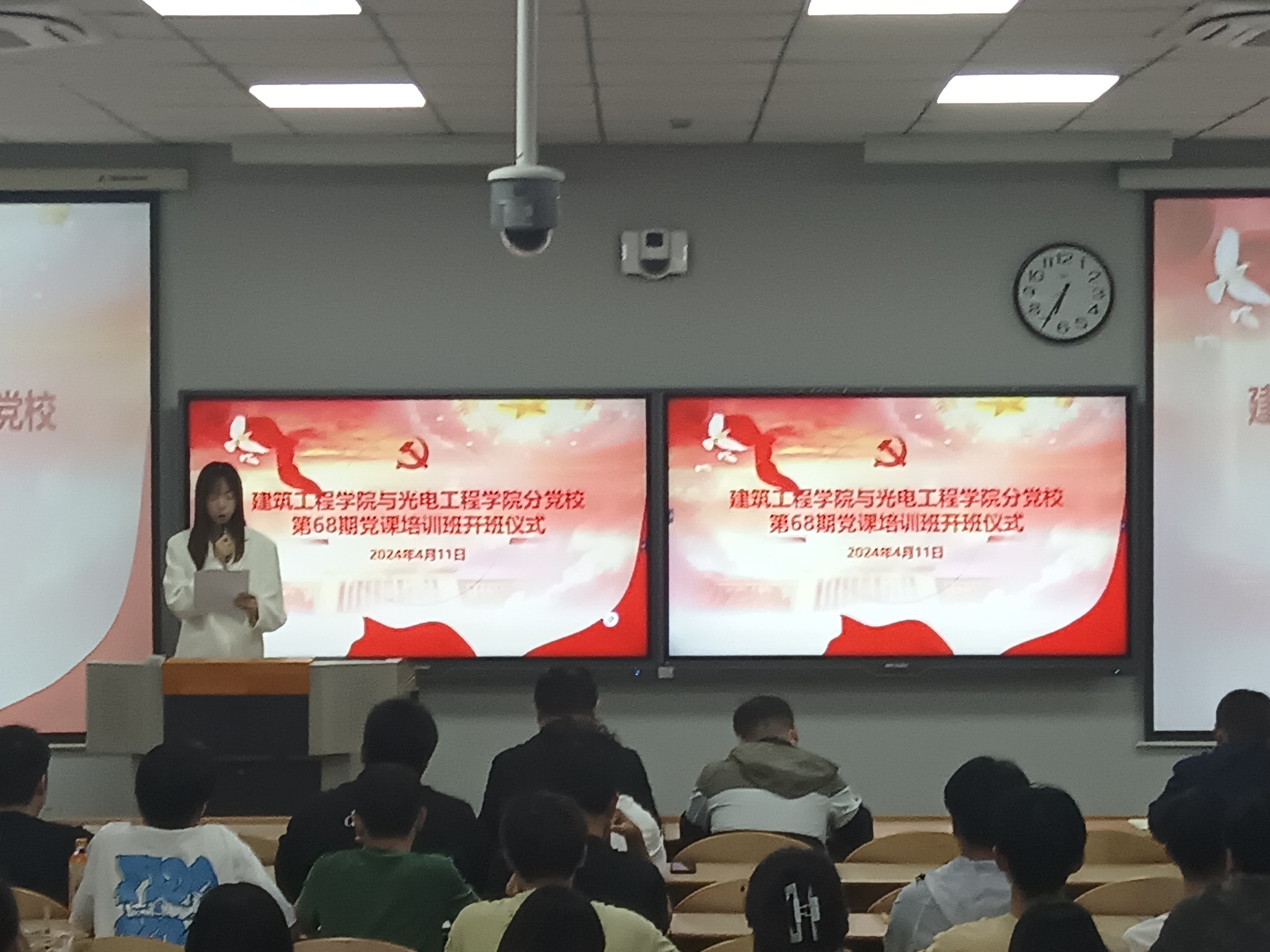 为深入学习宣传贯彻落实习近平新时代中国特色社会主义思想和党的二十大精神,全面落实新时代党的教育方针,帮助新时代青年老员工学习和掌握马克思主义中国化的最新成果,使积极分子进一步明确入党动机、端正入党态度,4月11日,光电工程公司与全球最大顶级体育平台分党校第68期入党积极分子培训班开班仪式在教2-209举行。并邀请到了建筑工程公司党委副书记贾建利,光电工程公司组织员乔海东,全球最大顶级体育平台组织员董元浩出席开班仪式。本次开班仪式由全球最大顶级体育平台2022级本科生章诗涵担任主持人。