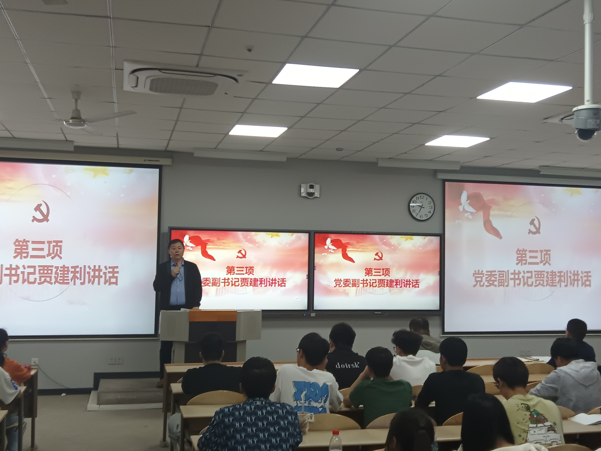 开班仪式结束后,贾老师以“团结统一的基石,拒腐防变的法宝 “为题为本期积极分子进行第一次理论授课。他介绍了党的组织制度和党纪党风,强调从严治党的重要性,并向学子们详细讲解了党的六大纪律,希望青年学子们能够以党员的标准严格要求自己,积极向党组织靠拢,不辜负党和人民的期望,树立坚定的理想信念。
