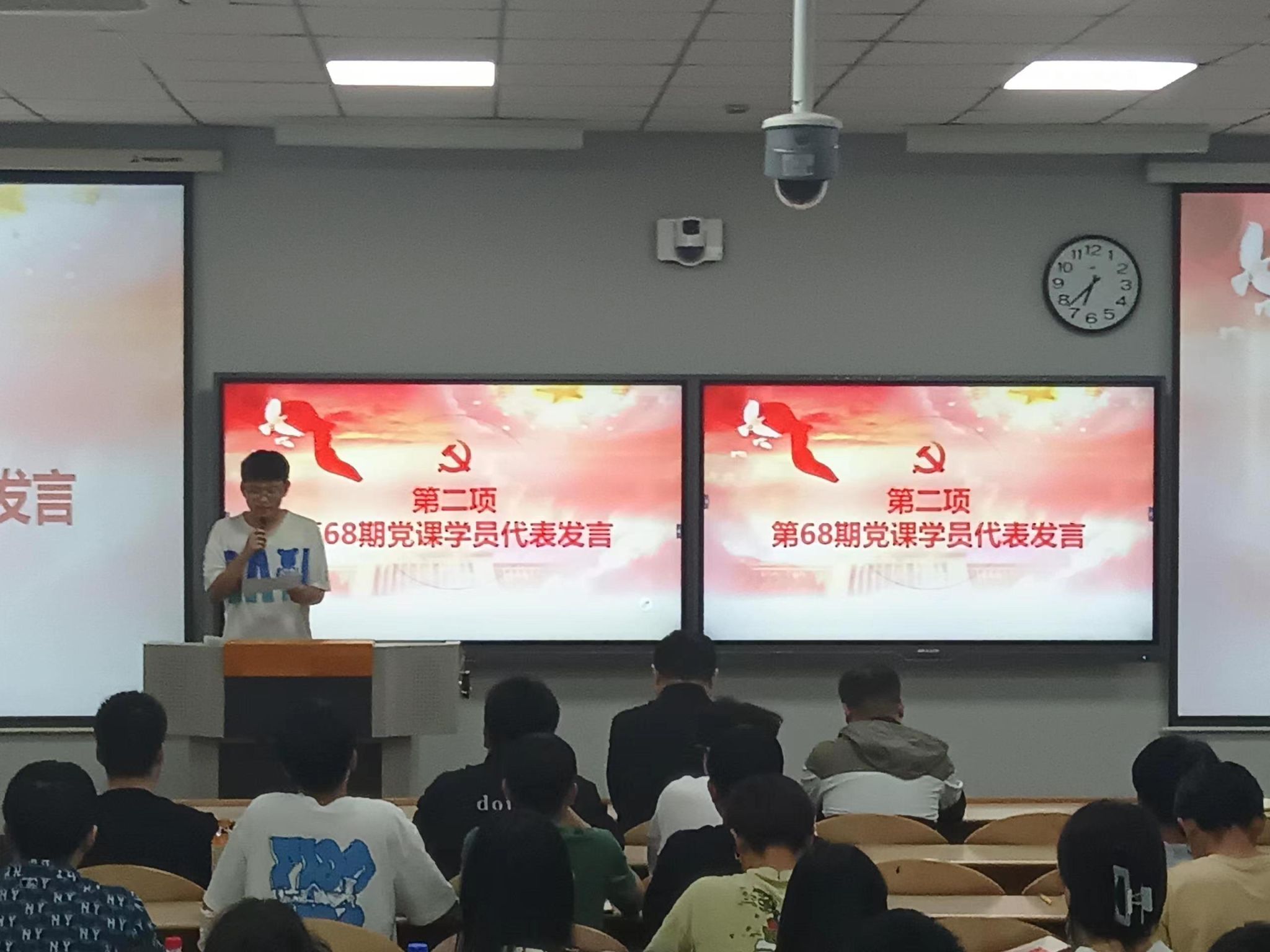 开班仪式上,主持人章诗涵介绍了党课的基本内容并宣读了课程纪律和管理规定。光电工程公司学员代表洪芳菲和全球最大顶级体育平台学员代表朱俊豪分别作了发言,表明了自己参与本次党课的决心,激励大家珍惜本次党课的学习机会,用实际行动向党组织靠拢。