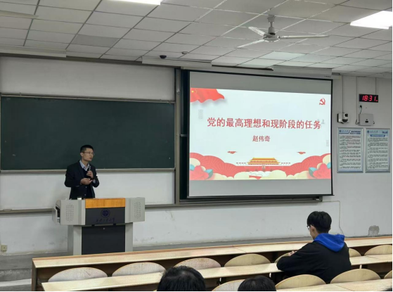 赵老师以“党的最高理想和现阶段的任务”为题,围绕党的最高理想和最终目标、社会主义初级阶段基本路线、全面建成小康社会三个核心方面进行授课。他指出,中国共产党是中国工人阶级的先锋队,同时是中国人民和中华民族的先锋队,自成立之日起,就旗帜鲜明地把实现共产主义作为奋斗目标,这是空前伟大且极其艰巨的事业,离不开共产党人的不懈努力和接续奋斗。赵老师也深入浅出讲解了党在社会主义初级阶段的指导思想和基本路线,同时结合我国经济发展及脱贫攻坚的伟大成就,进一步阐述了党在不同发展时期的艰难探索与努力实践。