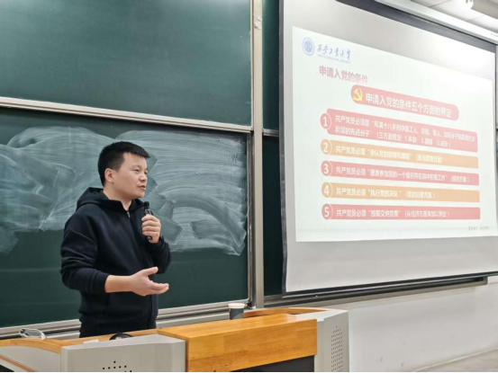随后,他深入解读了入党誓词的深刻内涵,要求全体学员不仅要在思想上深刻认同,更要在日常学习、工作和生活中脚踏实地,从小事做起,从身边的一点一滴做起,将“全心全意为人民服务”这一根本宗旨内化于心、外化于行,努力在平凡的位置上创造不平凡的成绩。最后,刘老师带领学员们系统性学习了递交入党申请书到正式成为一名党员期间所需要的完整流程及步骤。他殷切期望学员们能够深入学习领会习近平新时代中国特色社会主义思想与党的二十届四中全会精神,坚定理想信念,以党员标准严格要求自己,用实际行动争取早日入党,勇担时代重任,争做有为青年。
